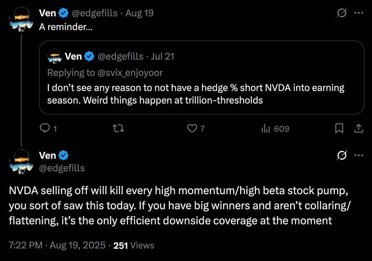 And the reason I called the top on NVDA basically to the tick is precisely because I was so aggressively bullish in my positioning prior (not in the stock itself, but in how I managed correlated risk.)